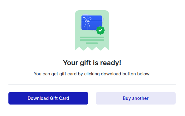 After your payment is successfully processed, you will receive a confirmation message. You will also be given an option to download the Gift Card as a PDF file.